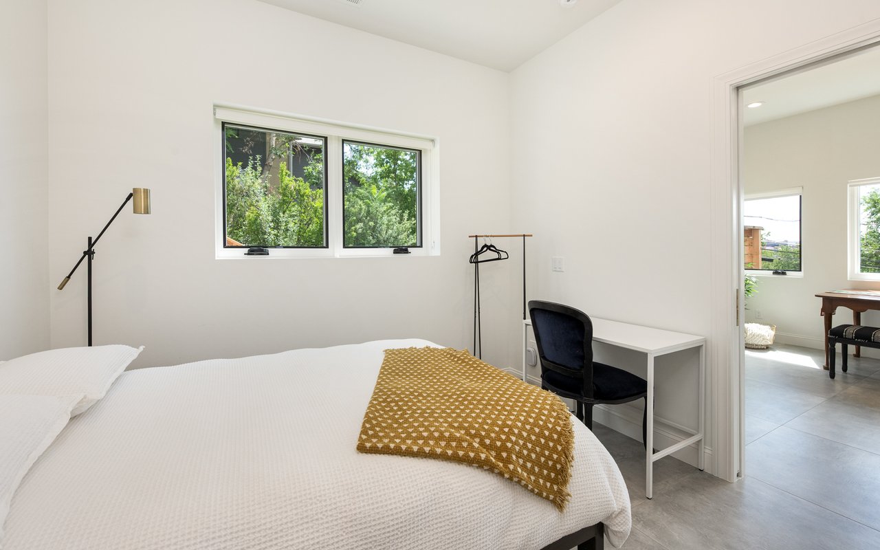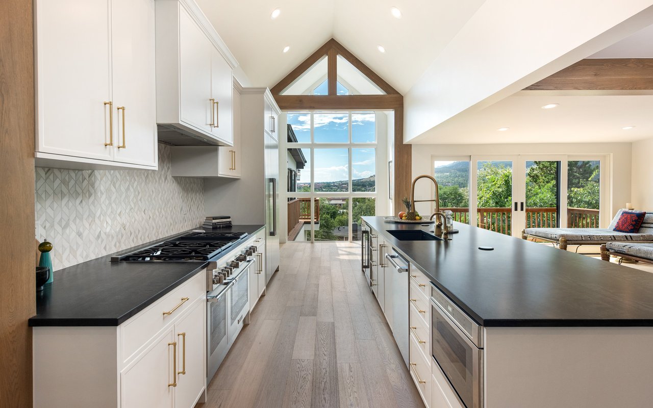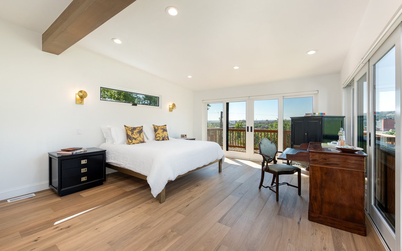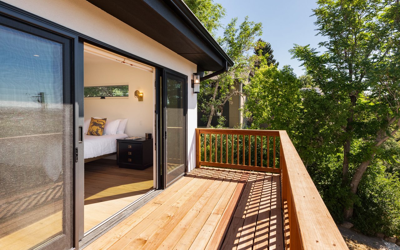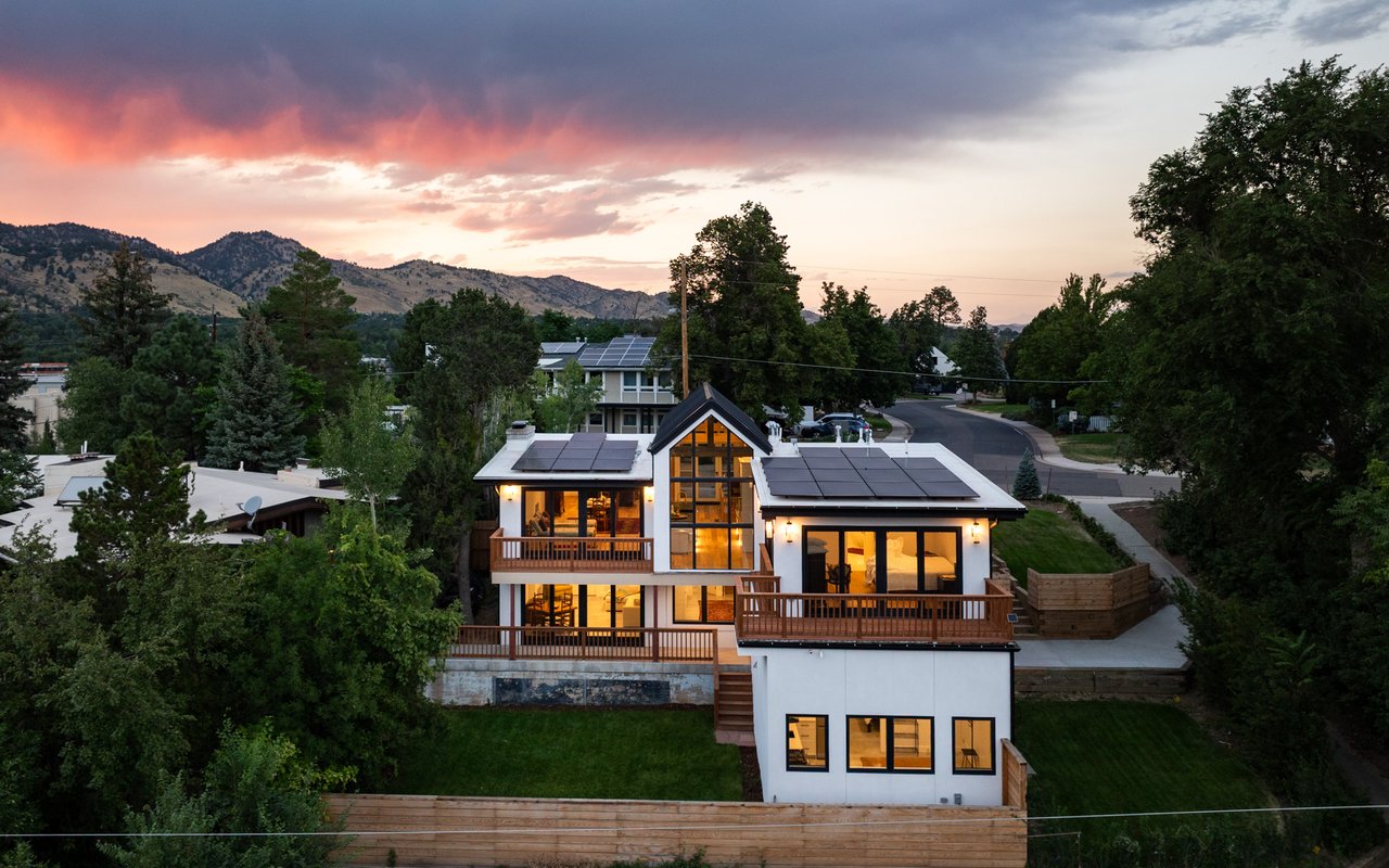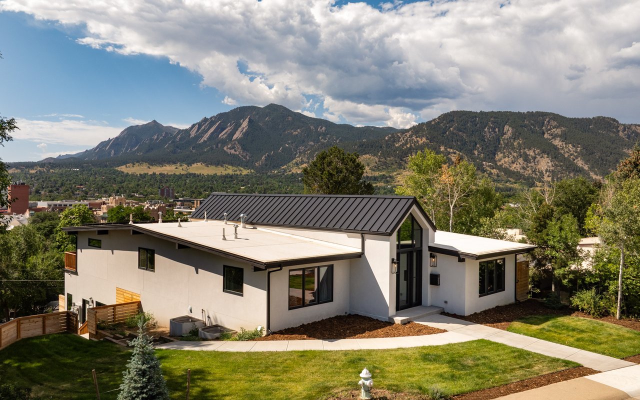Introducing Sunset Hill's modern masterpiece, 1450 High Street, with classic Boulder elegance and unobstructed Flatiron views, completely rebuilt in 2024-25 - the pinnacle of refined living. Perched on a coveted downtown hillside, this masterfully reimagined home which includes an exquisite accessory dwelling unit (ADU) which extends the home's versatility with its separate entrance and stylish remodel is just four blocks from the iconic Pearl Street filled with Michelin restaurants, music theaters and upscale boutique shopping. A dramatic glass entry draws you in - discover chic designer interiors - an inviting open living/dining room with its exposed beams, wide-plank oak floors, wood-burning fireplace and south-facing balcony. The breathtaking, state of the art, gourmet kitchen with its expansive quartz island, marble backsplash, custom wood cabinetry, designer fixtures and luxurious Thermador appliances meets every chef's needs. The wall of new, energy efficient windows invites sunlight to cascade through the space, highlighting the exquisite craftsmanship. Enjoy coffee with Flatiron views in the breakfast nook or entertain with ease -the indoor/outdoor flow leading everyone to the deck. Escape to the main level primary suite with huge views and two sets of sliding doors to private deck & Juliet balcony. Indulge in a resort-like ensuite bath with soaking tub, thermostatic shower for two, double vanity and admire your organized oversized walk-in closet. Awake to sunrises gleaming off the foothills and the rooftops of CU. The main level includes a sweet 2nd bedroom and adjacent full bath. Downstairs, enjoy a family room with fireplace, two more bedrooms, designer bathroom, extraordinary mudroom with floor-to-ceiling cabinets and LG appliances in laundry room. The lower level sliding doors open to a patio and lush, grassy yard. Expansive parking possibilities with four private parking spaces and a garage permit in process. Living here feels like a well-kept secret.