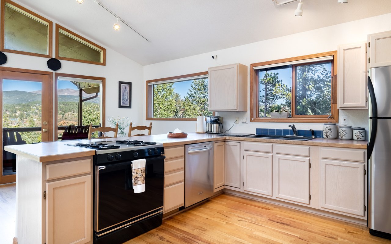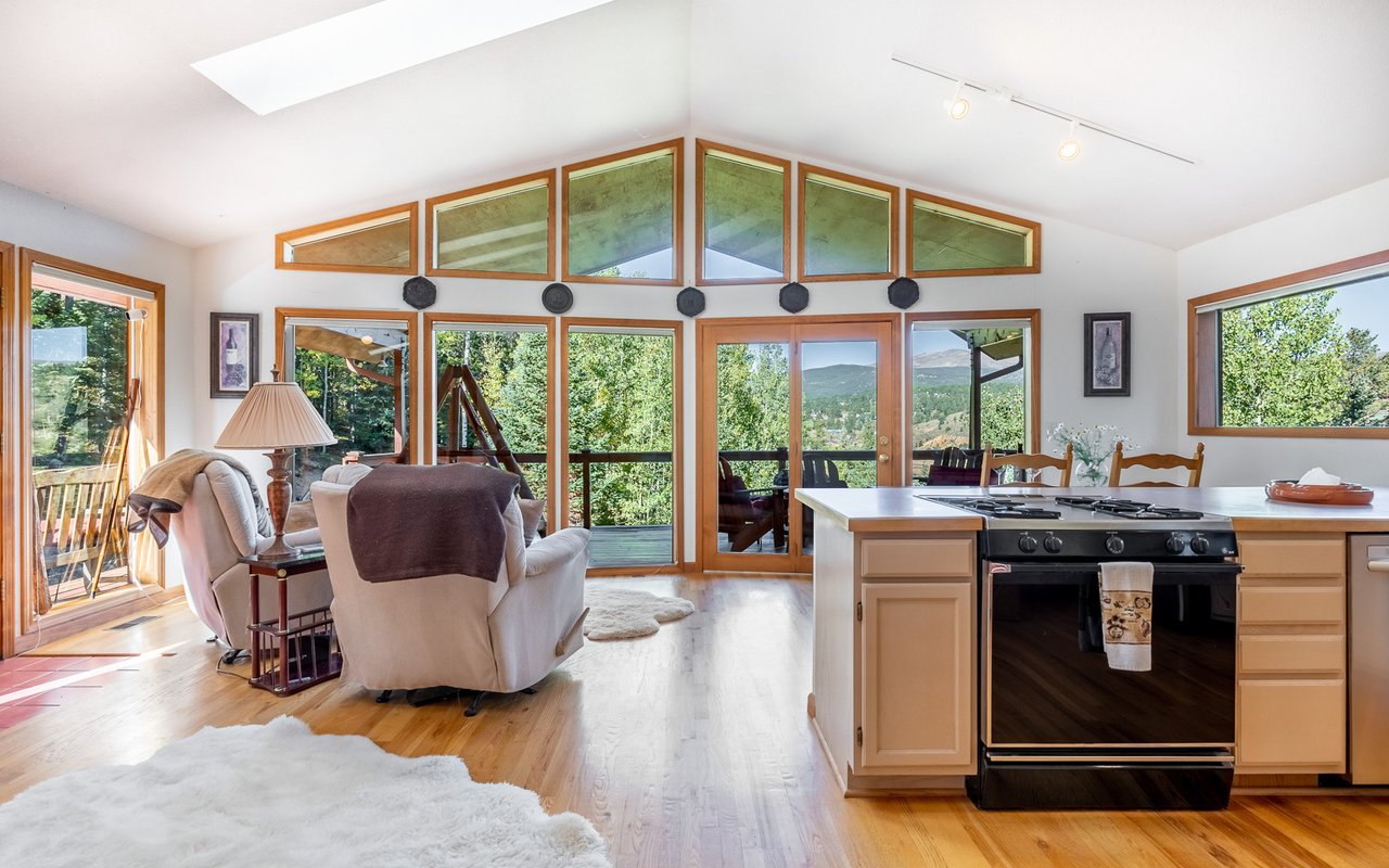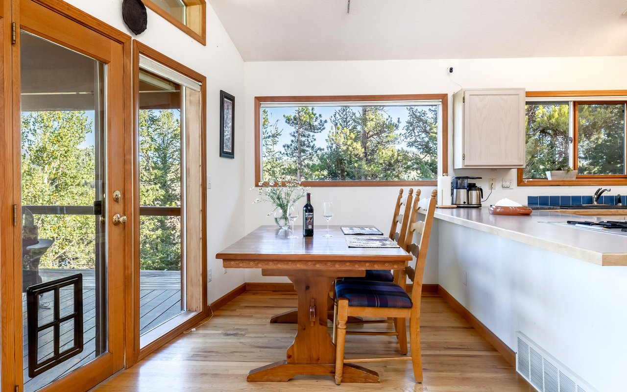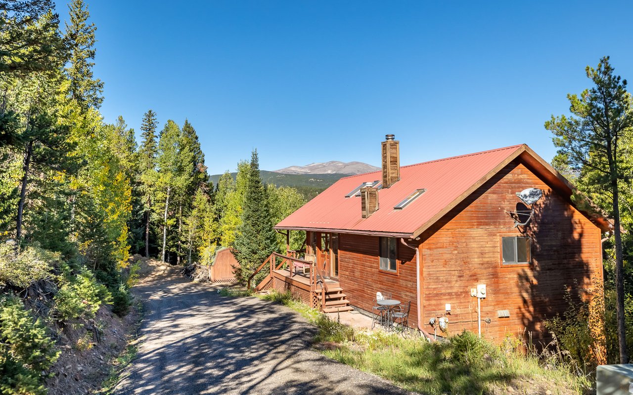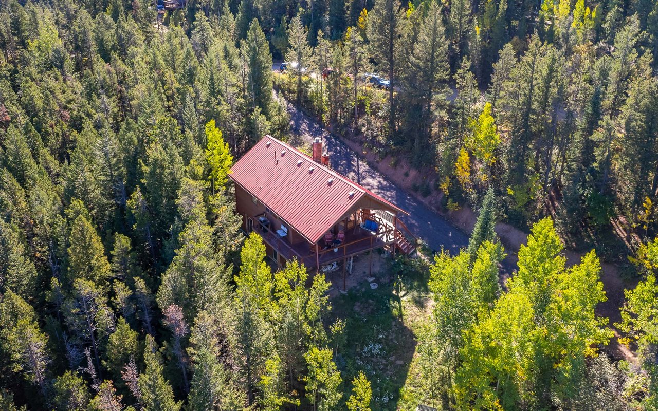 Charming and private cabin with views of scenic Barker reservoir and the mountain peaks beyond. Spacious open concept floor plan with walls of floor to ceiling windows and skylights letting in natural light and highlighting the amazing views. On cold winter nights, gather round the cozy wood stove in the living room. Light and airy primary bedroom with plush carpet and plenty of space for a king-sized bed and seating area. Head to the walk-out lower level with a second bedroom, wet bar and family room. Situated on more than 1 acre surrounded by pine trees and natural wilderness but only 5 minutes to downtown Nederland shops and restaurants, this is the perfect mountain getaway. Third bedroom on the lower level is non-conforming.