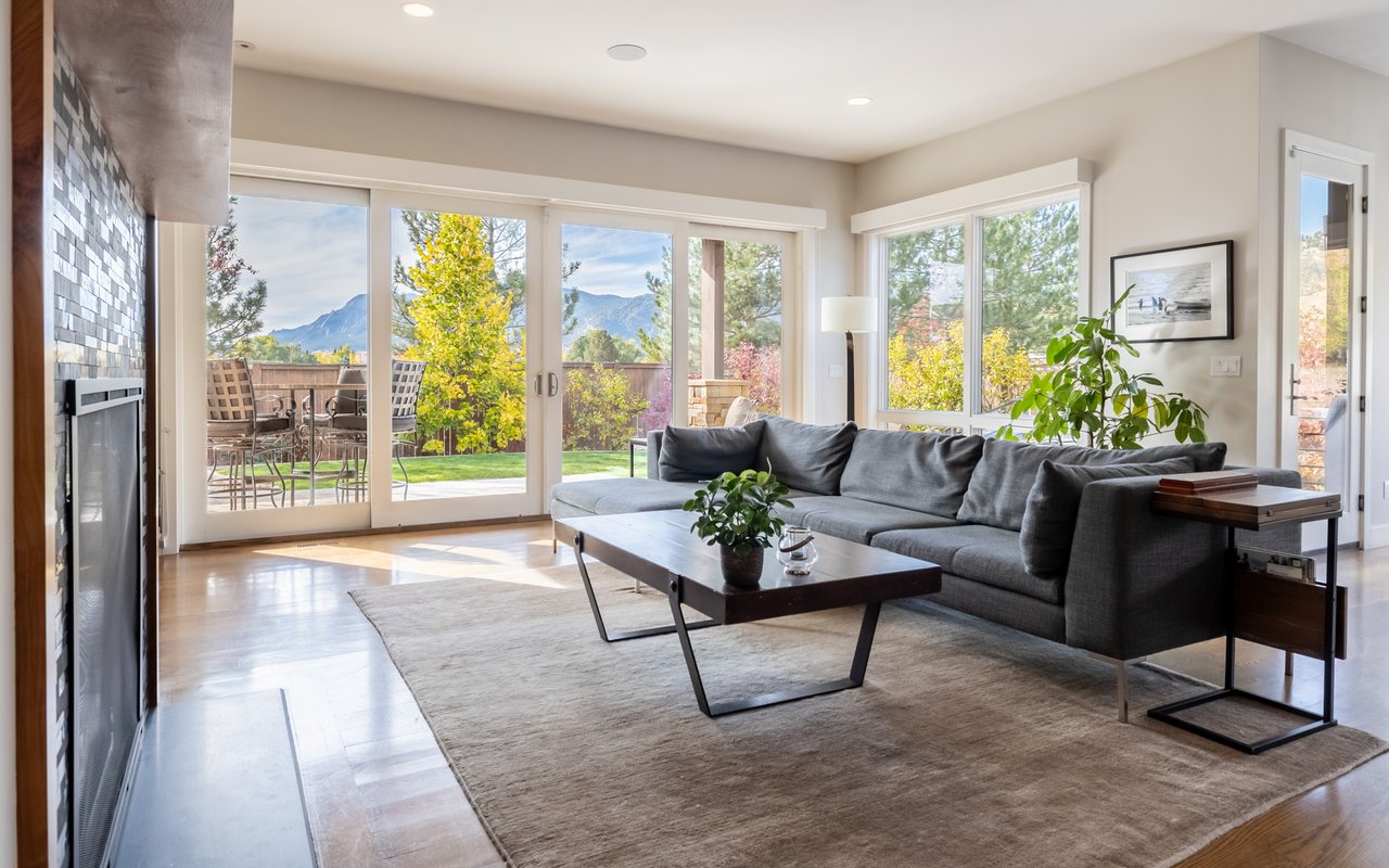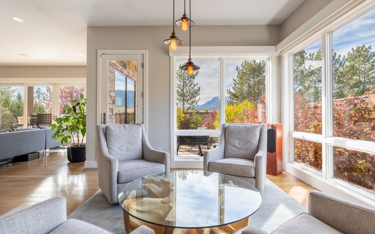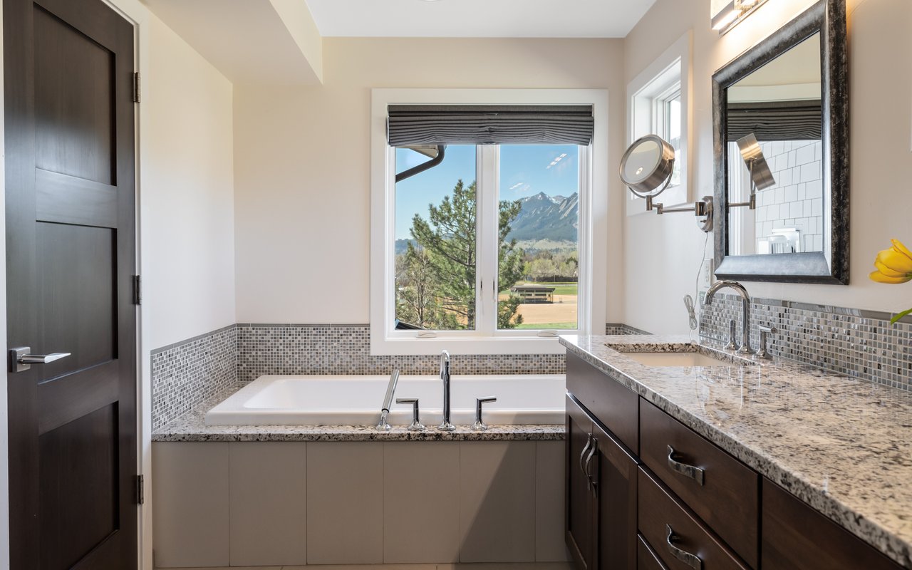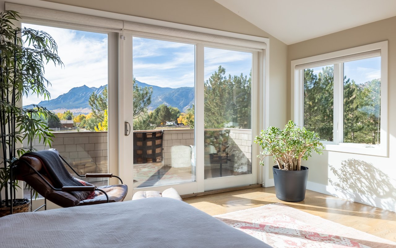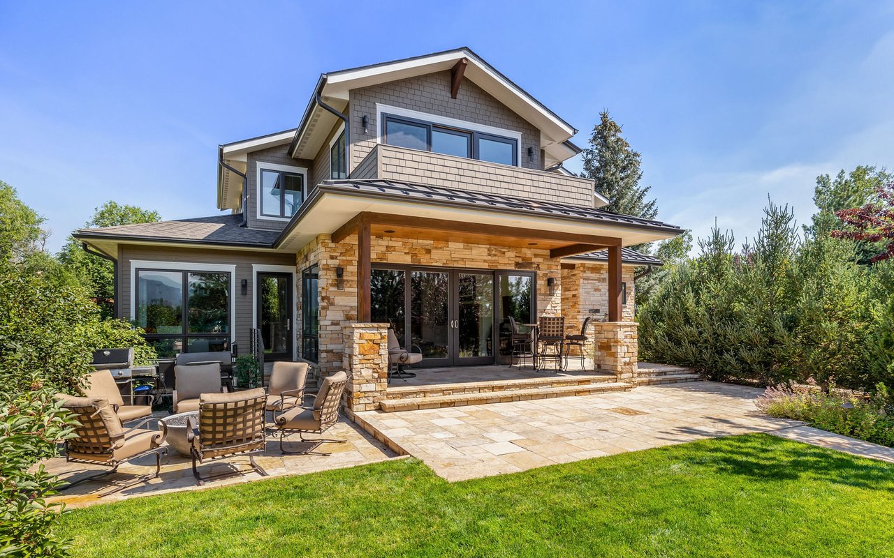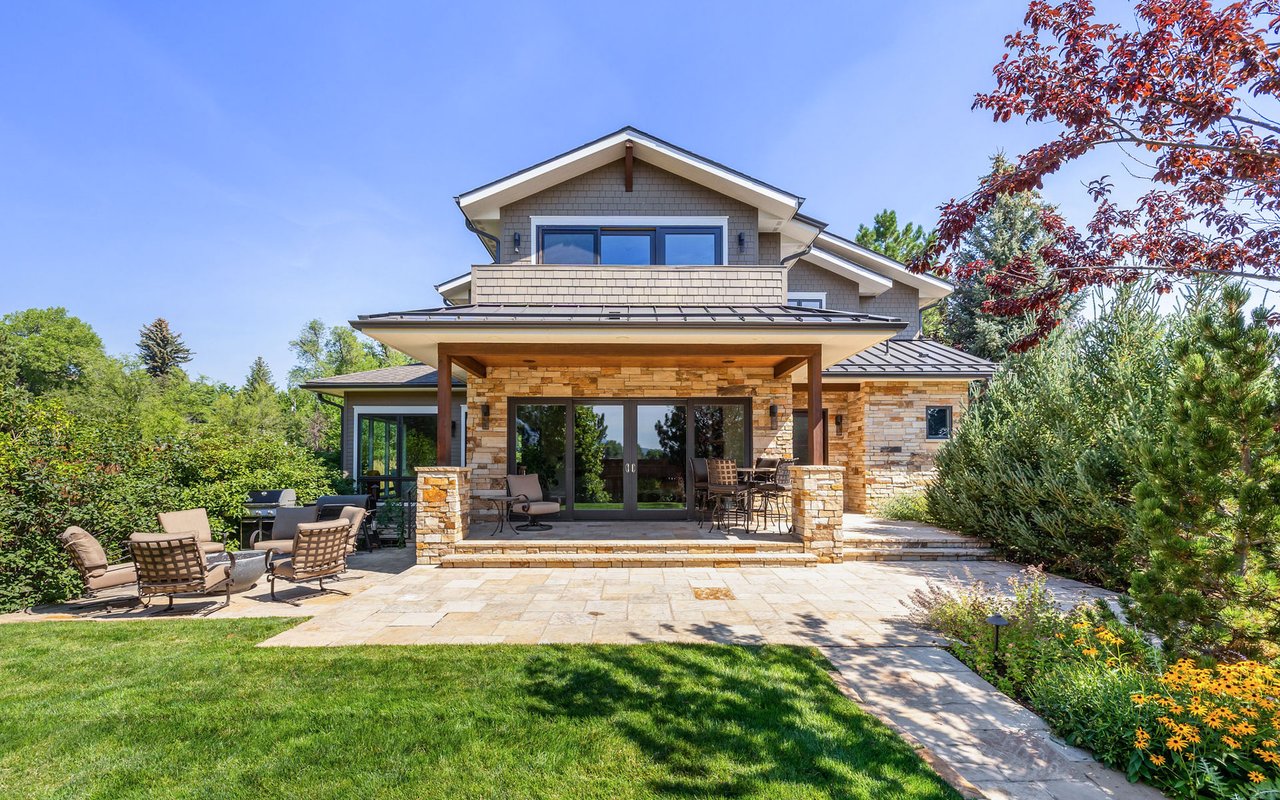 Sweeping Flatiron views meet rare tranquility and Central Boulder accessibility in this stunning 4-bedroom, 5-bath featuring an open indoor-outdoor layout and an oversized lot nestled on a tranquil Melody Heights cul-de-sac. Built in 2017, the home boasts refinished hardwood floors, fresh paint, soaring ceilings, and walls of windows framing radiant natural light. A gracious foyer with a powder room ushers you to an open great room with a gorgeous fireplace. In the gourmet open kitchen, custom cabinetry, granite counters and tile backsplashes surround top-of-the-line stainless steel appliances. The adjacent pantry adds storage space, while the center island sets the stage for casual dining. A corner office, mudroom and laundry room add exceptional convenience to the main level. Glass doors tempt you outside for world-class al fresco entertaining and lounging on covered and open patios stretching to manicured landscaping. Mature trees and fencing encircle this 0.28-acre lot for complete privacy, while breathtaking Flatirons views sweep across the horizon. In the upper-level primary suite, a king-size bedroom impresses with vaulted ceilings, a gas fireplace, a south-facing balcony, and an en suite spa bathroom with a double vanity, freestanding tub, steam shower, private water closet and massive walk-in closet. Two spacious and bright secondary suites with roomy closets and private baths complete this floor. Fun and games await on the carpeted lower level, where a huge family room and media/game area are anchored by a walk-up bar and illuminated by large egress windows. A fourth bedroom suite with a semi-private bathroom is perfect for guests or staff. A long driveway leading to an oversized three-car garage provides plenty of off-street parking, while a stone-trimmed facade adds timeless curb appeal to this turnkey Boulder beauty. This sought-after location is just minutes from Lucky's Market, Ideal Market, CU, Pearl Street, parks and trails.