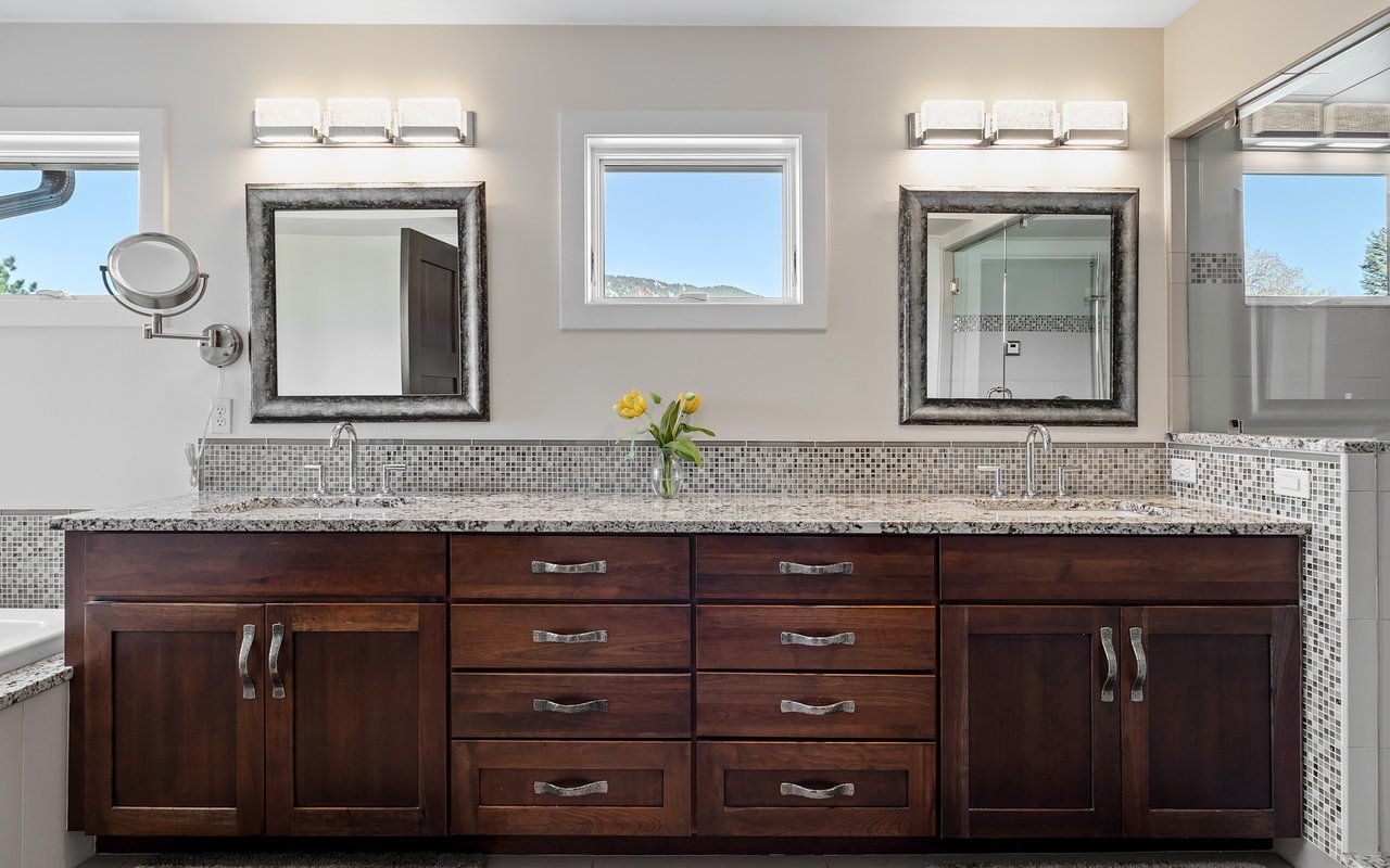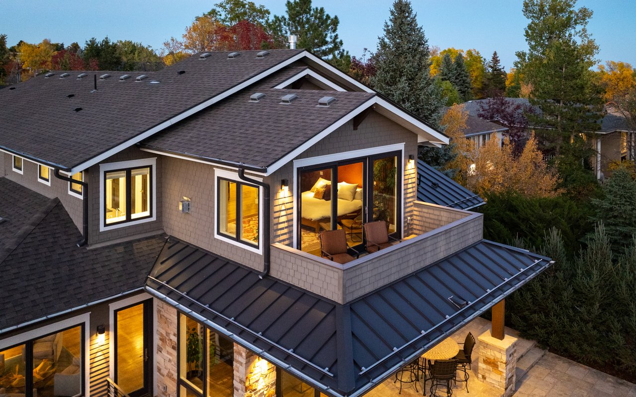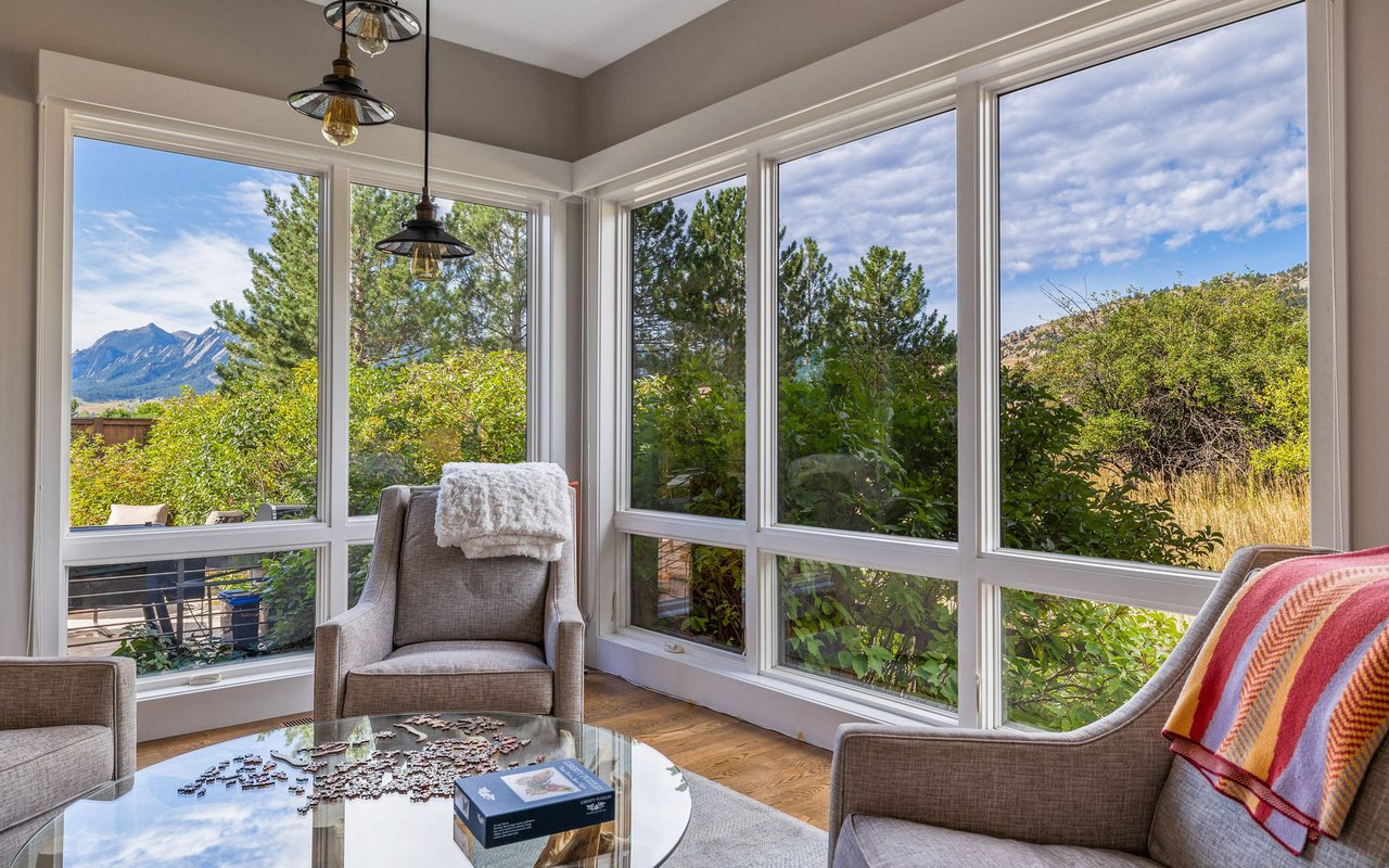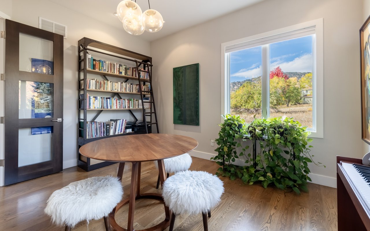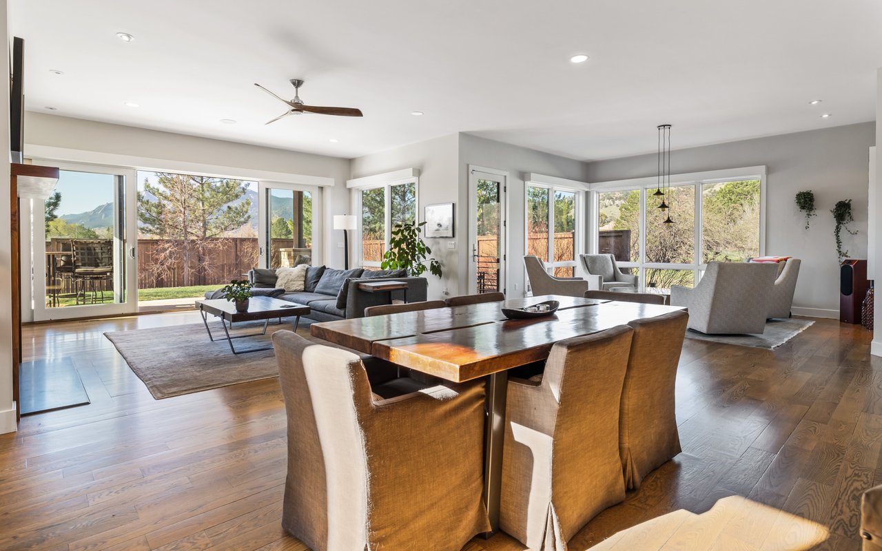 Sweeping Flatiron views meet rare tranquility and Central Boulder accessibility in this stunning 4-bedroom, 5-bath featuring an open indoor-outdoor layout and an oversized lot nestled on a tranquil Melody Heights cul-de-sac. Built in 2017, the home boasts refinished hardwood floors, fresh paint, soaring ceilings, and walls of windows framing radiant natural light. A gracious foyer with a powder room ushers you to an open great room with a gorgeous fireplace. In the gourmet open kitchen, custom cabinetry, granite counters and tile backsplashes surround top-of-the-line stainless steel appliances. The adjacent pantry adds storage space, while the center island sets the stage for casual dining. A corner office, mudroom and laundry room add exceptional convenience to the main level. Glass doors tempt you outside for world-class al fresco entertaining and lounging on covered and open patios stretching to manicured landscaping. Mature trees and fencing encircle this 0.28-acre lot for complete privacy, while breathtaking Flatirons views sweep across the horizon. In the upper-level primary suite, a king-size bedroom impresses with vaulted ceilings, a gas fireplace, a south-facing balcony, and an en suite spa bathroom with a double vanity, freestanding tub, steam shower, private water closet and massive walk-in closet. Two spacious and bright secondary suites with roomy closets and private baths complete this floor. Fun and games await on the carpeted lower level, where a huge family room and media/game area are anchored by a walk-up bar and illuminated by large egress windows. A fourth bedroom suite with a semi-private bathroom is perfect for guests or staff. A long driveway leading to an oversized three-car garage provides plenty of off-street parking, while a stone-trimmed facade adds timeless curb appeal to this turnkey Boulder beauty. This sought-after location is just minutes from Lucky's Market, Ideal Market, CU, Pearl Street, parks and trails.