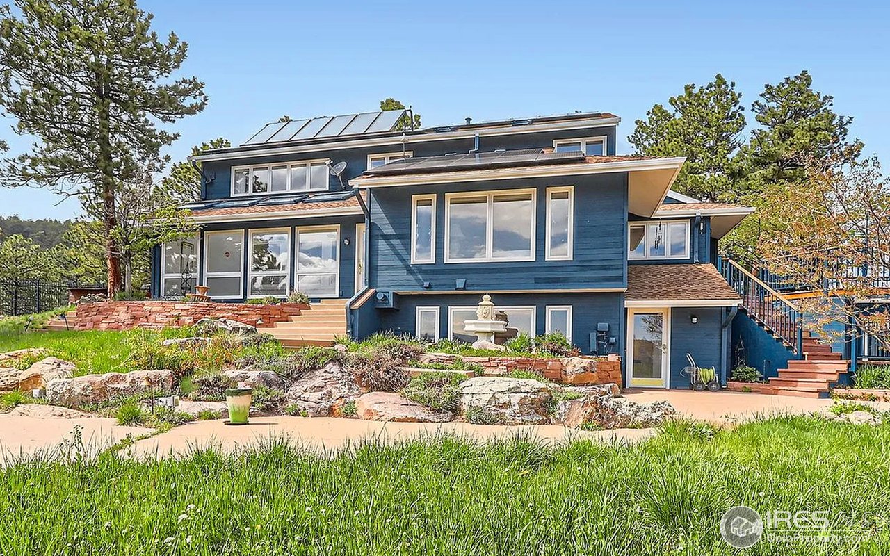 This extraordinary mountain estate is an exceptional retreat that blends off-grid capability with refined indoor-outdoor living. Perched at 6,750 feet on 14 fire-mitigated manicured acres, a 5,050 sq ft south-facing residence with sweeping panoramic views of the Denver skyline, peaks of Colorado Springs, and a scenic stretch of Route 93. The property features 4 buried 1,000-gallon propane tanks (approx. 2.5 years of supply), a Generac generator with transfer switch, and both PV and hydro-solar systems-delivering low utility bills and peace of mind. A private 930-foot well supplies pristine water, fully purified by a whole-house reverse osmosis and ionization system.The outdoor living experience is resort-like with a heated pool and electric cover, a tiled pool house, a deep-blue built-in jacuzzi set into the mountainside with outdoor shower, and a custom daybed under a majestic pine. A spiral staircase from the lower deck to the primary suite's private balcony, with 3,000 sq ft of warm wood and concrete patios and decks perfect for entertaining, relaxing, or soaking in views. The paved 1/4-mile, 14'-wide driveway offers ease of access, with engineered drainage, no erosion issues, and multiple pull-offs-ample space for over 15 vehicles. Flat meadows surround the home and a fenced dog run with a brick kennel and garage-access dog doors. This property is one of Boulder County's most self-reliant and beautifully situated mountain estates-a true turn-key sanctuary built for the future.