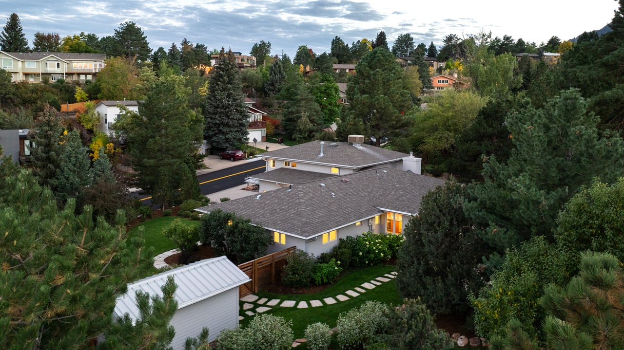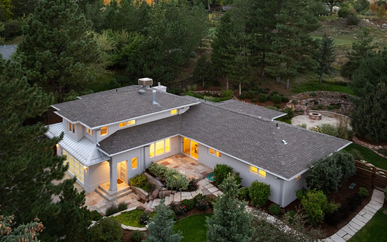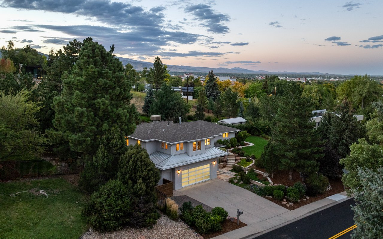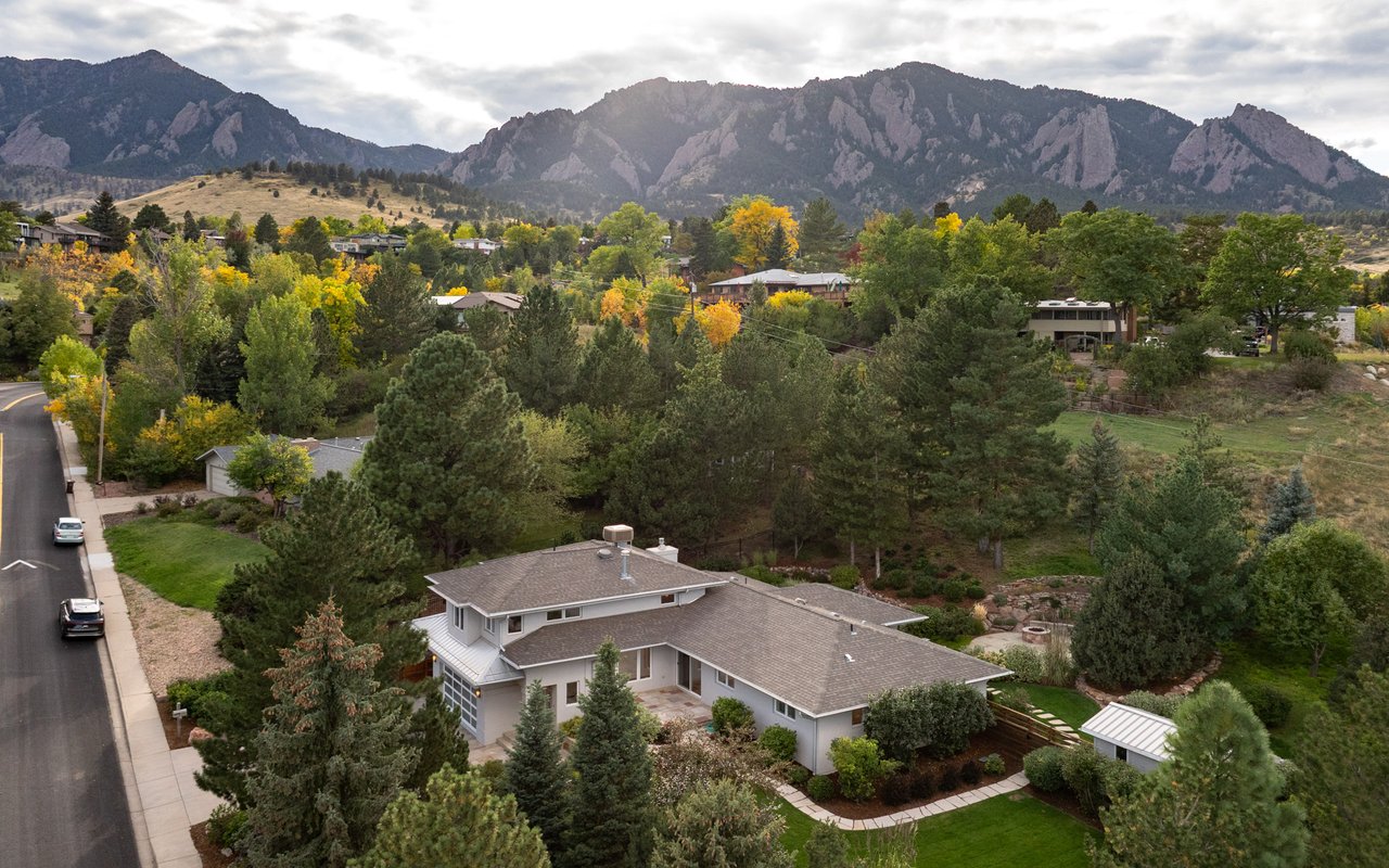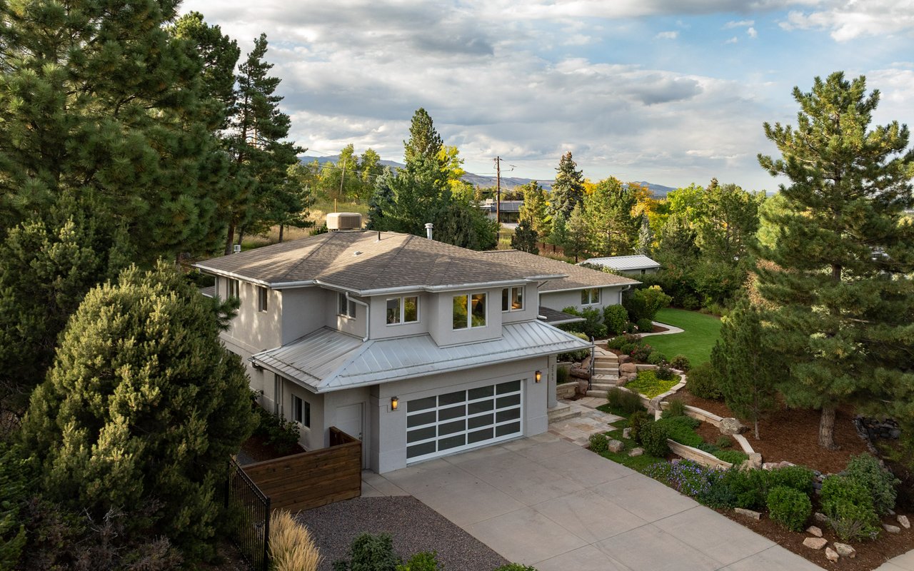 Immaculate South Boulder sanctuary on a stunning 0.59-acre lot! Embrace sophisticated indoor-outdoor living in this beautifully remodeled 4-bedroom, 4-bath featuring pristine sun-kissed interiors, exceptional outdoor space, en suite bedrooms and an ideal Highland Park location. Thoughtfully updated inside and out by Rosewood Construction and Landscape Construction, this nearly 3,000SF residence impresses with crisp white walls, oversized windows and skylights, and floors covered with handsome hardwood, stone and contemporary carpeting. Relax in the corner living room surrounded by a fireplace, built-ins and verdant views, and enjoy your next gathering in the lovely dining area featuring an adjoining patio. The gourmet kitchen impresses with wood cabinetry, a center island/breakfast bar, granite countertops and stainless steel appliances. Large windows and skylights usher in amazing light and views while folding glass doors make al fresco entertaining irresistible. Outside, the stunning 0.59-acre property features an oversized flagstone patio surrounded by rock walls, towering trees, a grill, a fire pit and a charming garden shed. On the main floor, you'll find two spacious secondary suites with private baths and roomy closets. A powder room, a huge mudroom with built-in storage, and a laundry room complete this level's well-planned layout. Upstairs, explore the full-floor owner's retreat featuring a king-size bedroom with 270-degree treetop views. The en suite spa bath boasts a freestanding soaking tub, shower and double vanity. There are walk-in closets in the bedroom and hall, and a fourth bedroom on this level is ideal as an office or nursery. Extensive upgrades include a composite and metal roof, galvanized gutters, radiant heat bathrooms, and a 2-car garage with newer door and epoxy flooring. A manicured front yard adds curb appeal to this South Boulder retreat close to world-class trailheads, open space, top-rated schools, Table Mesa Shopping Center, Pearl Street and Downtown.