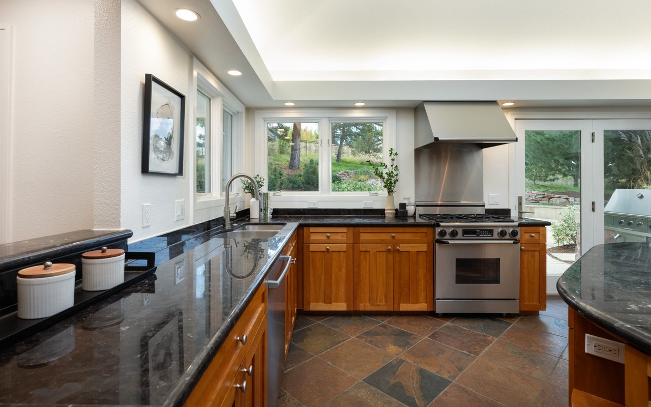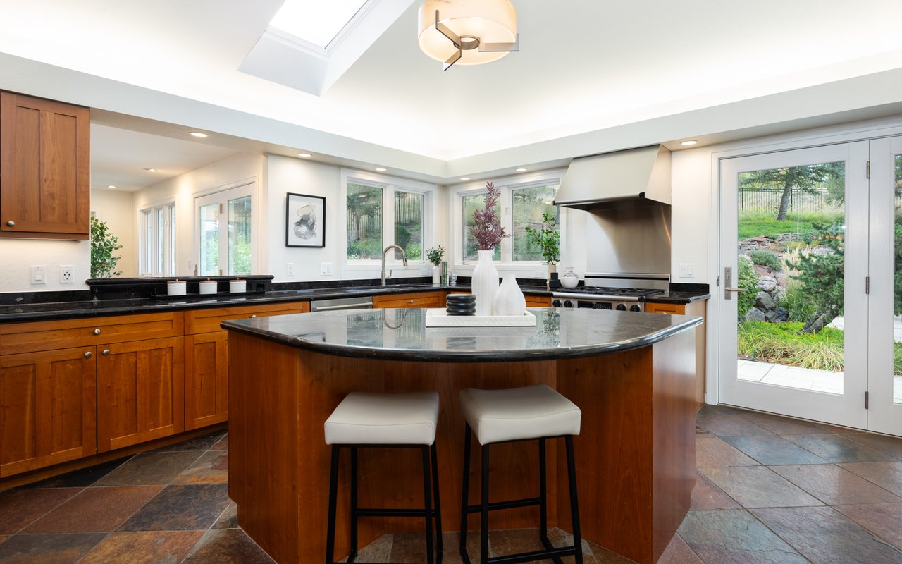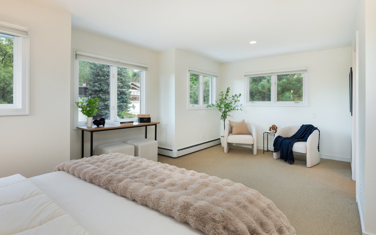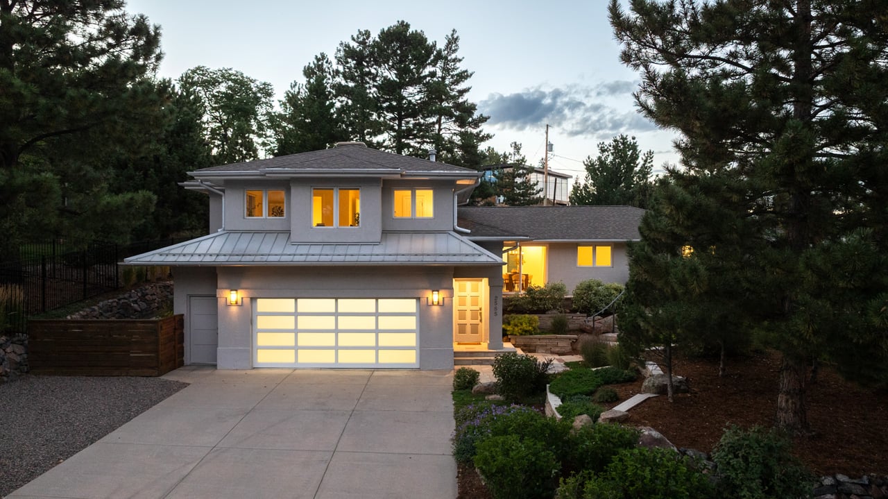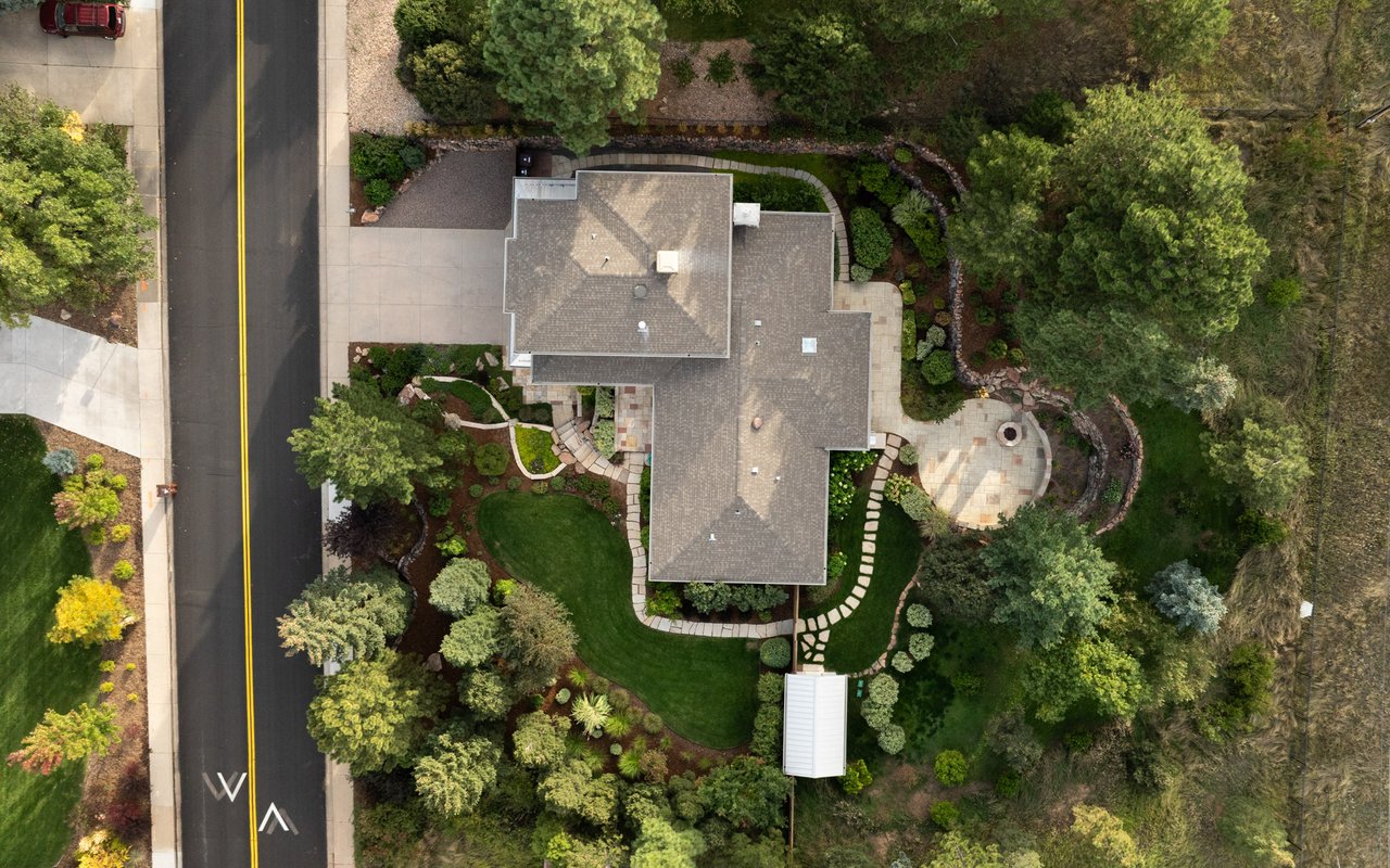 Immaculate South Boulder sanctuary on a stunning 0.59-acre lot! Embrace sophisticated indoor-outdoor living in this beautifully remodeled 4-bedroom, 4-bath featuring pristine sun-kissed interiors, exceptional outdoor space, en suite bedrooms and an ideal Highland Park location. Thoughtfully updated inside and out by Rosewood Construction and Landscape Construction, this nearly 3,000SF residence impresses with crisp white walls, oversized windows and skylights, and floors covered with handsome hardwood, stone and contemporary carpeting. Relax in the corner living room surrounded by a fireplace, built-ins and verdant views, and enjoy your next gathering in the lovely dining area featuring an adjoining patio. The gourmet kitchen impresses with wood cabinetry, a center island/breakfast bar, granite countertops and stainless steel appliances. Large windows and skylights usher in amazing light and views while folding glass doors make al fresco entertaining irresistible. Outside, the stunning 0.59-acre property features an oversized flagstone patio surrounded by rock walls, towering trees, a grill, a fire pit and a charming garden shed. On the main floor, you'll find two spacious secondary suites with private baths and roomy closets. A powder room, a huge mudroom with built-in storage, and a laundry room complete this level's well-planned layout. Upstairs, explore the full-floor owner's retreat featuring a king-size bedroom with 270-degree treetop views. The en suite spa bath boasts a freestanding soaking tub, shower and double vanity. There are walk-in closets in the bedroom and hall, and a fourth bedroom on this level is ideal as an office or nursery. Extensive upgrades include a composite and metal roof, galvanized gutters, radiant heat bathrooms, and a 2-car garage with newer door and epoxy flooring. A manicured front yard adds curb appeal to this South Boulder retreat close to world-class trailheads, open space, top-rated schools, Table Mesa Shopping Center, Pearl Street and Downtown.