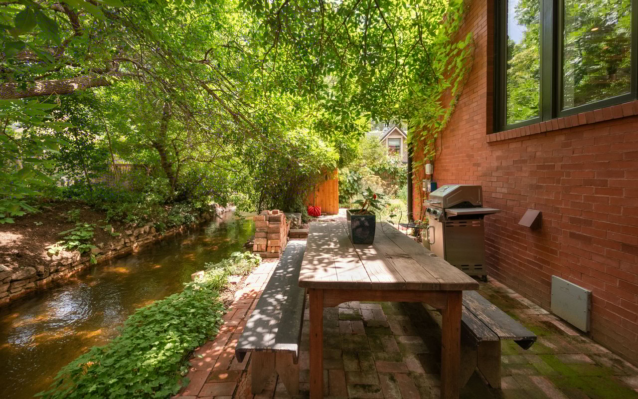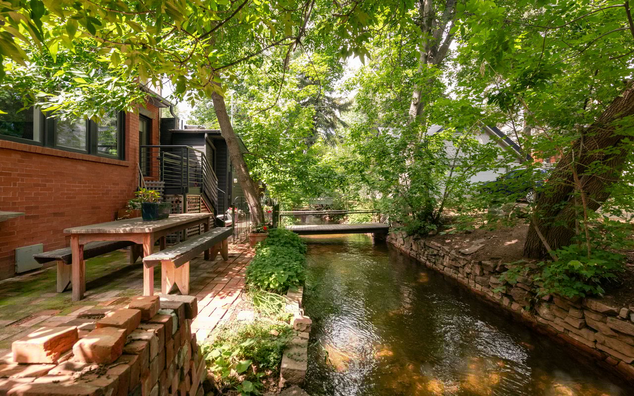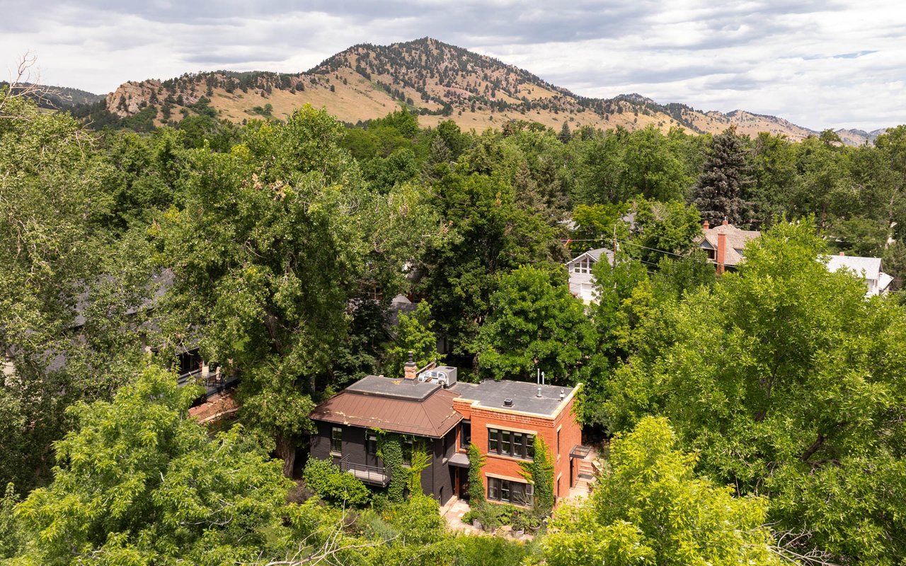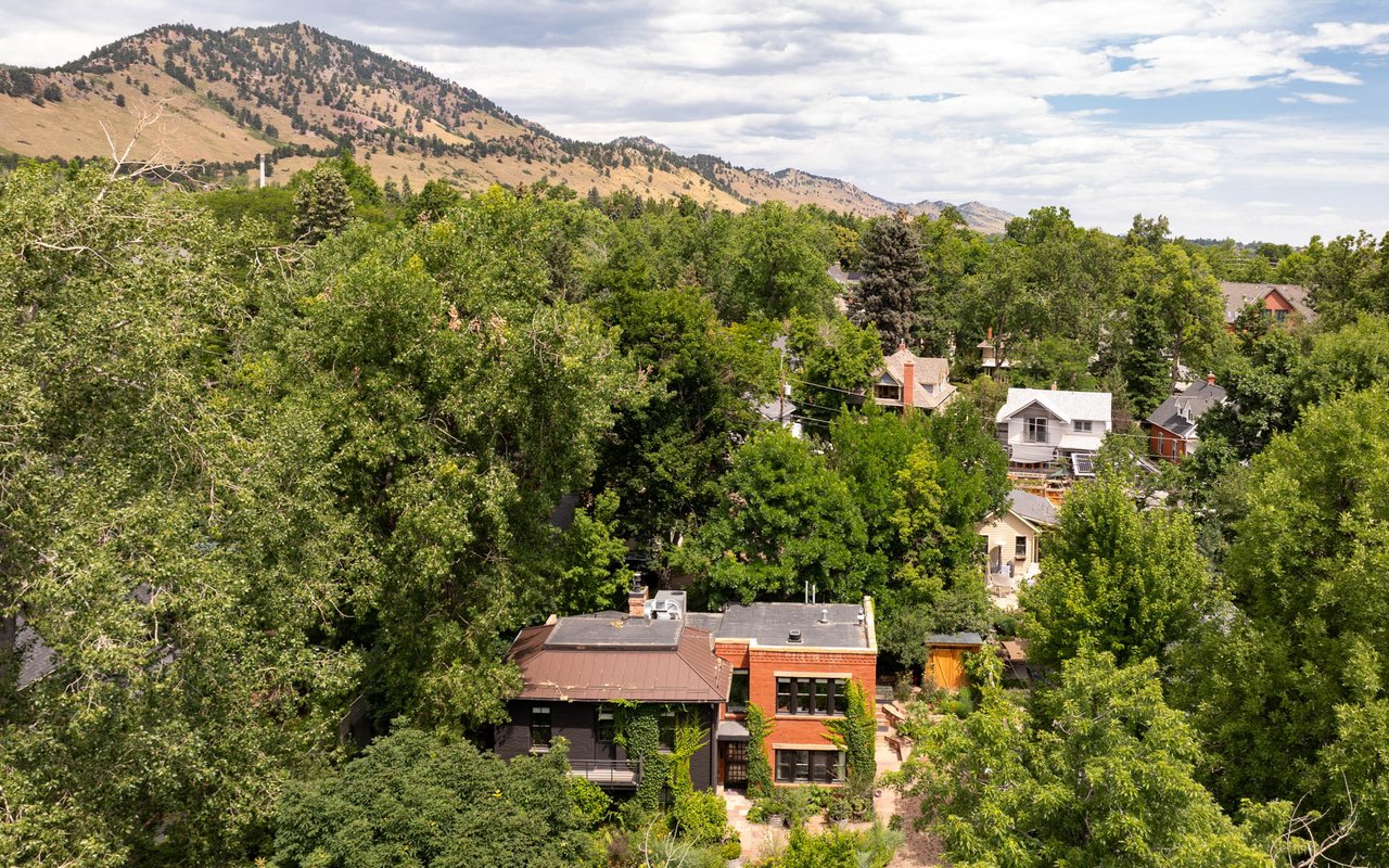 Historic charm meets modern sophistication in this award-worthy Mapleton Hill residence, steps from Pearl Street and Boulder's trail system. Thoughtfully restored inside and out, the home balances timeless architecture with contemporary comforts. The gourmet kitchen is the centerpiece of the main level, featuring custom cabinetry, a Wolf range with a custom steel hood, soapstone countertops, and an oversized island ideal for gathering. Large windows with Southern and Northern exposure, custom built-ins, and a gas fireplace frame Sun-filled living spaces. A striking steel staircase with open wood treads adds architectural interest, while glass doors open to a private streamside patio and lush irrigated gardens. The primary suite features outdoor access, a walk-in closet with custom shelving, and a spa-like bath equipped with a double vanity, steam shower, and a copper soaking tub. The lower level provides two additional bedrooms with adjacent baths, an office, and a mudroom with easy access to storage and mechanicals. Additional features include evaporative cooling, radiant heating, a new standing seam metal roof, and valuable water rights. Combining an unbeatable downtown location with elevated design, this property offers a rare opportunity to own a piece of Boulder history, updated for modern living. Conceptual plans for an addition/carport have been approved by Boulder's Landmark Design Review Committee. The addition would add 208 finished square feet to the upper level along with covered parking for one vehicle plus storage.