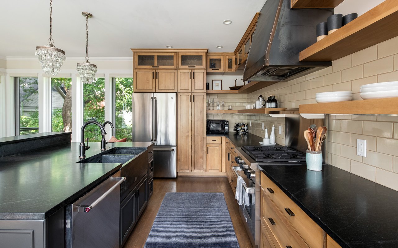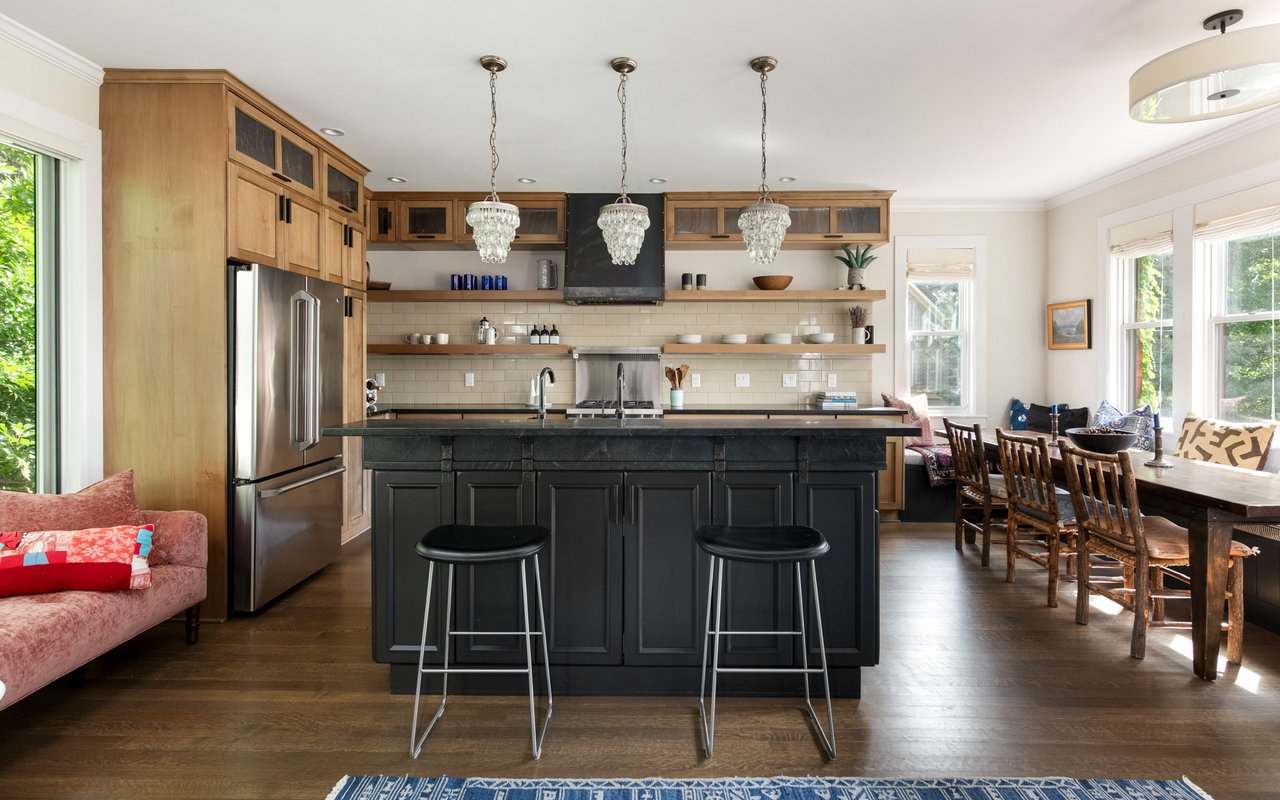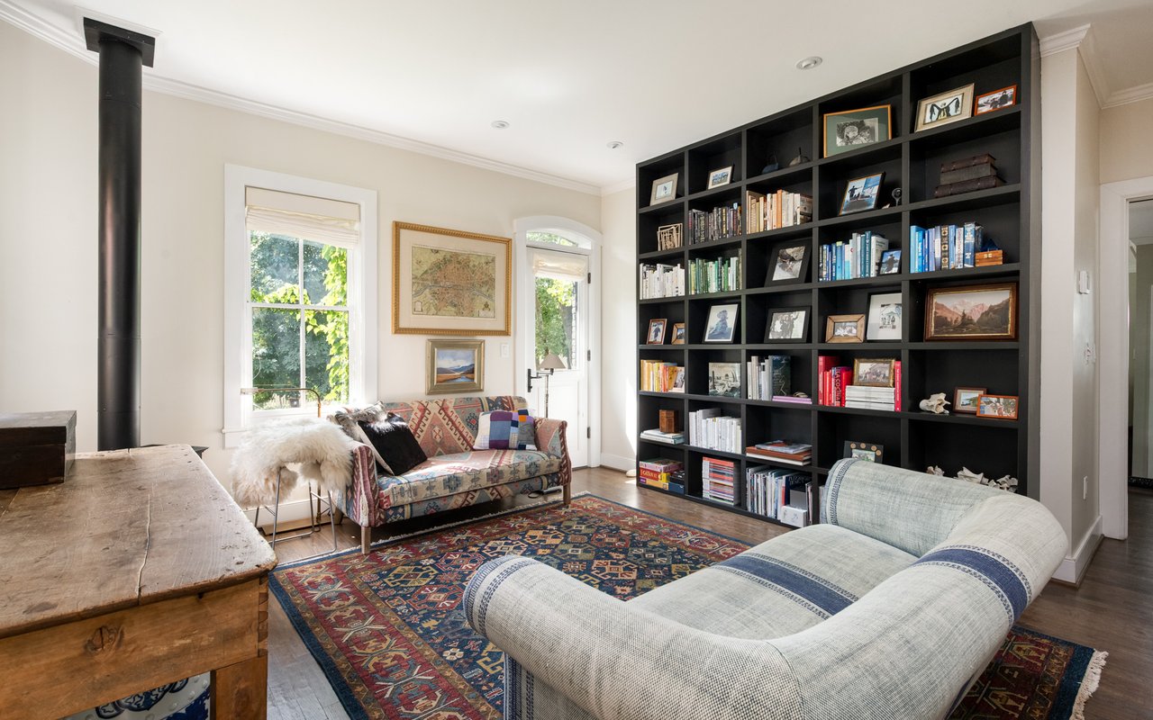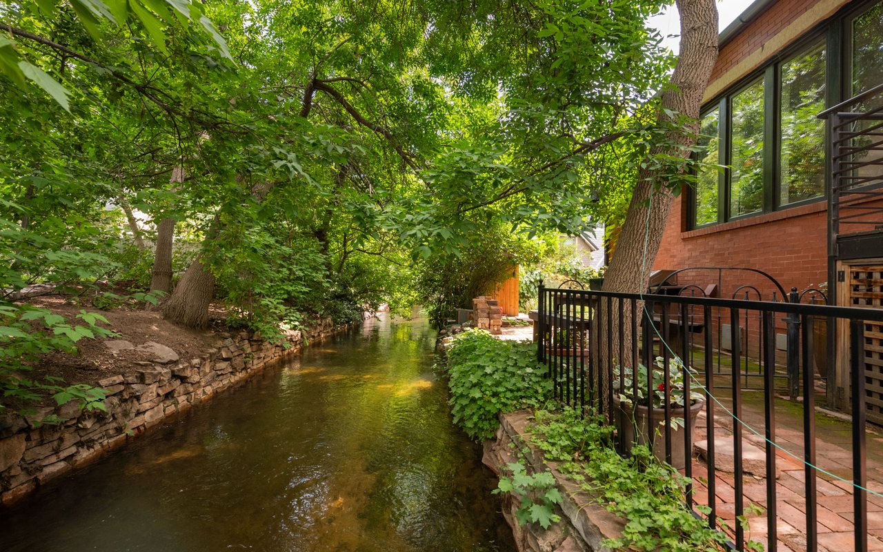 Historic charm meets modern sophistication in this award-worthy Mapleton Hill residence, steps from Pearl Street and Boulder's trail system. Thoughtfully restored inside and out, the home balances timeless architecture with contemporary comforts. The gourmet kitchen is the centerpiece of the main level, featuring custom cabinetry, a Wolf range with a custom steel hood, soapstone countertops, and an oversized island ideal for gathering. Large windows with Southern and Northern exposure, custom built-ins, and a gas fireplace frame Sun-filled living spaces. A striking steel staircase with open wood treads adds architectural interest, while glass doors open to a private streamside patio and lush irrigated gardens. The primary suite features outdoor access, a walk-in closet with custom shelving, and a spa-like bath equipped with a double vanity, steam shower, and a copper soaking tub. The lower level provides two additional bedrooms with adjacent baths, an office, and a mudroom with easy access to storage and mechanicals. Additional features include evaporative cooling, radiant heating, a new standing seam metal roof, and valuable water rights. Combining an unbeatable downtown location with elevated design, this property offers a rare opportunity to own a piece of Boulder history, updated for modern living. Conceptual plans for an addition/carport have been approved by Boulder's Landmark Design Review Committee. The addition would add 208 finished square feet to the upper level along with covered parking for one vehicle plus storage.