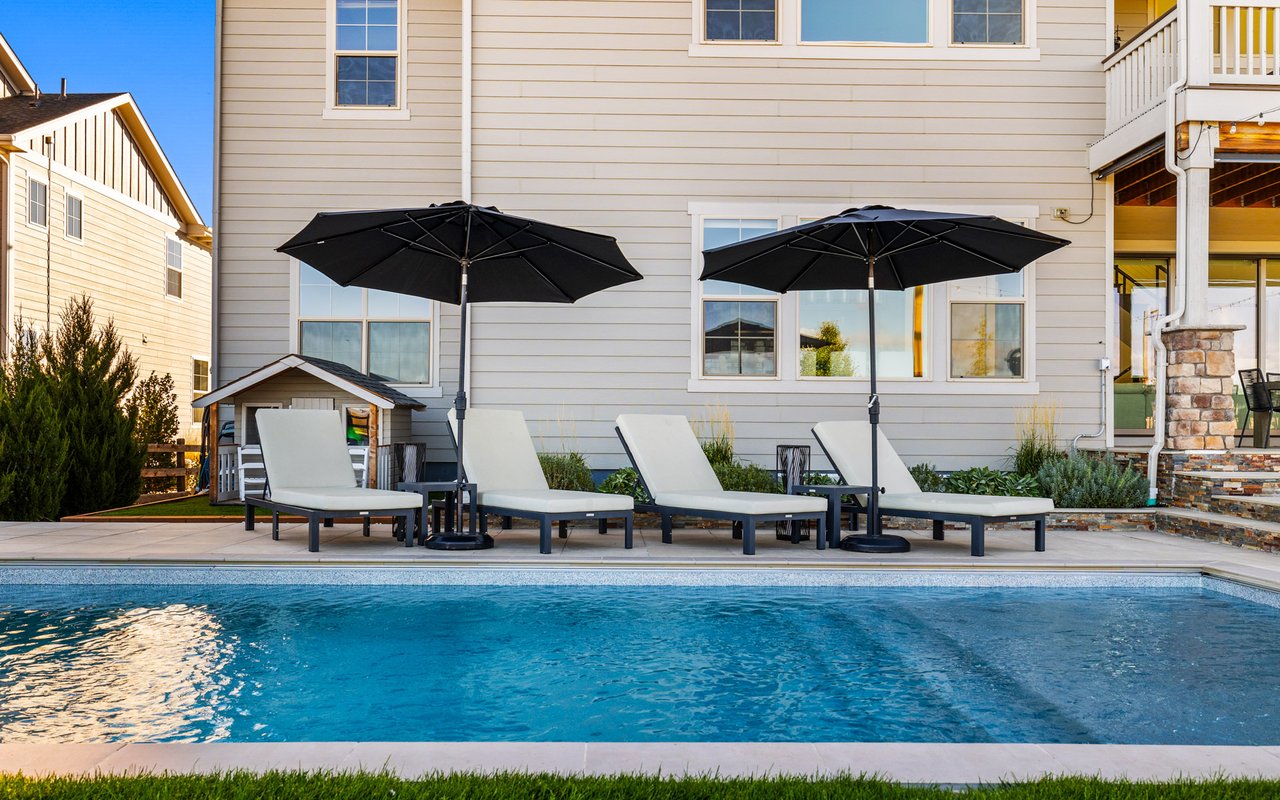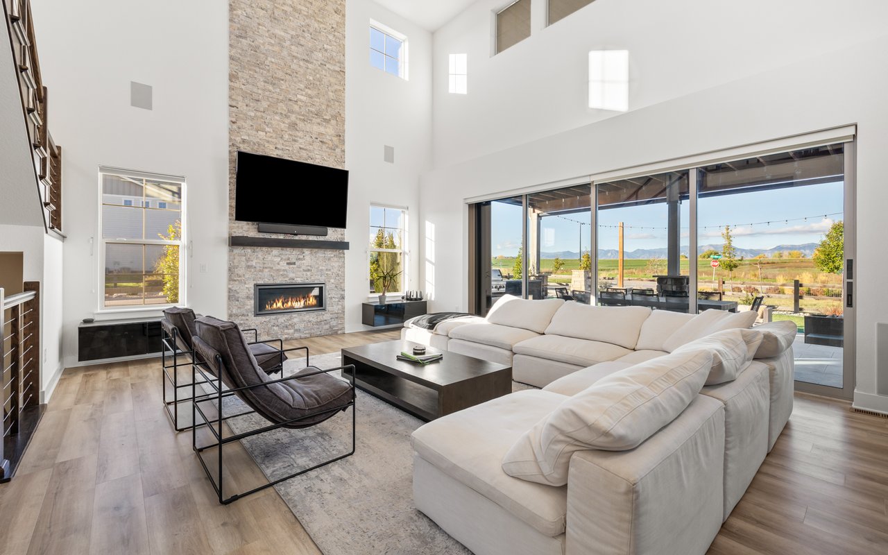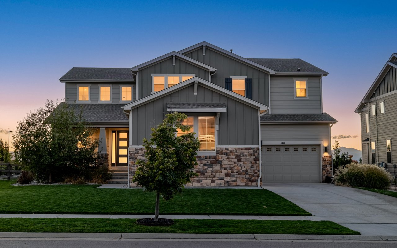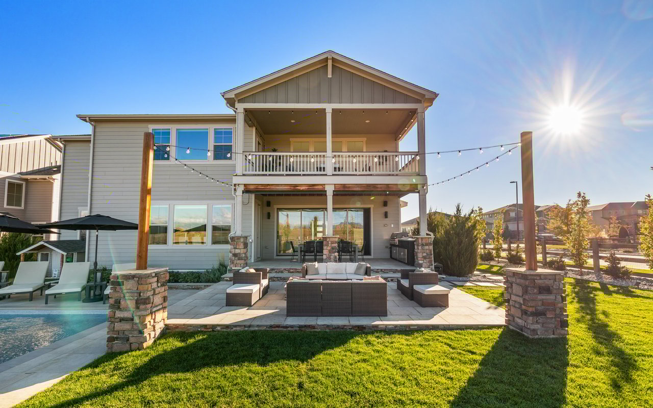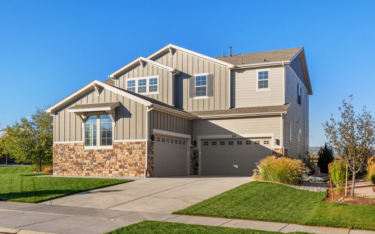 Turnkey luxury living awaits in this sun-drenched, newer-construction Erie 4-bedroom, 3.5-bath featuring expansive, upgraded interiors and poolside outdoor space. Inside this 3,954SF home, soaring ceilings and oversized windows create a bright and airy ambiance, while crisp white walls, wide-plank flooring and a soaring staircase bordered by metal-and-wire handrails underscore the contemporary aesthetic. The double-height living room features a gas fireplace, floating built-ins and double exposures. Chefs will love the gourmet open kitchen's top-of-the-line KitchenAid appliance suite, custom cabinetry, breakfast nook, and island dining counter, topped by Restoration Hardware pendants. A walk-in pantry adds storage, while a butler's pantry with a wine refrigerator leads to the formal dining room. Off the kitchen, a secondary suite is perfect for guests. A home office, powder room and mudroom complete the well-planned main level. From the living room, oversized sliders tempt you outdoors. Enjoy barbecues on the covered patio flanked by a summer kitchen, or warm yourself near the built-in gas fire pit. Ahead, the heated saltwater pool is surrounded by a sun deck, manicured landscaping and unimpeded mountain views. Head to the upper level to discover a large family room with views over the living room. The stunning primary suite boasts a king-size bedroom, private deck, two extra-large custom closets and an en suite spa bathroom. Two spacious secondary bedrooms share a Jack-and-Jill bathroom, while a large utility room with a GE washer-dryer makes laundry day a breeze. A 2,070SF unfinished lower level provides room to grow, and an oversized four-car garage adds plenty of off-street parking. Located in Flatiron Meadows, a peaceful enclave featuring foothills views, walking/biking paths, parks and easy access to Erie and Louisville amenities and BVSD schools, including nearby Meadowlark School. Discover serene country living just 20 minutes from Boulder and 40 minutes from Denver.