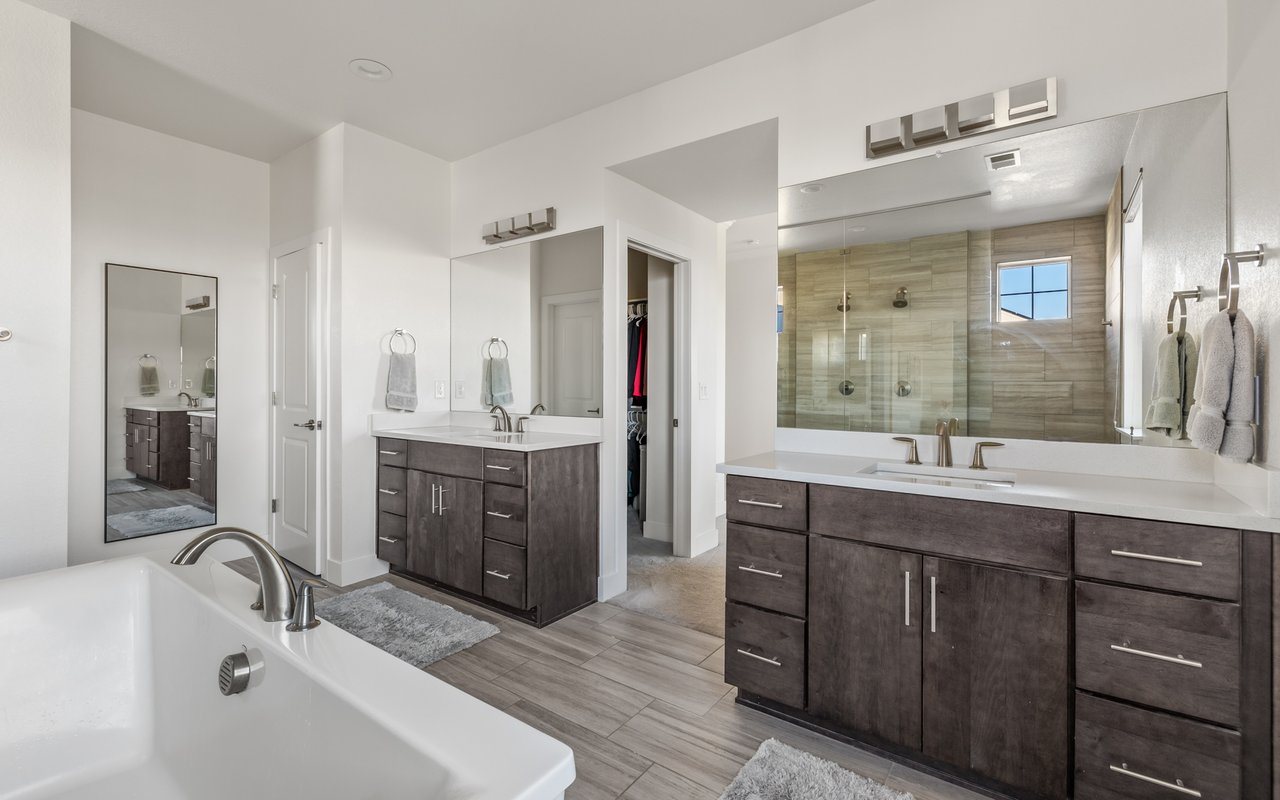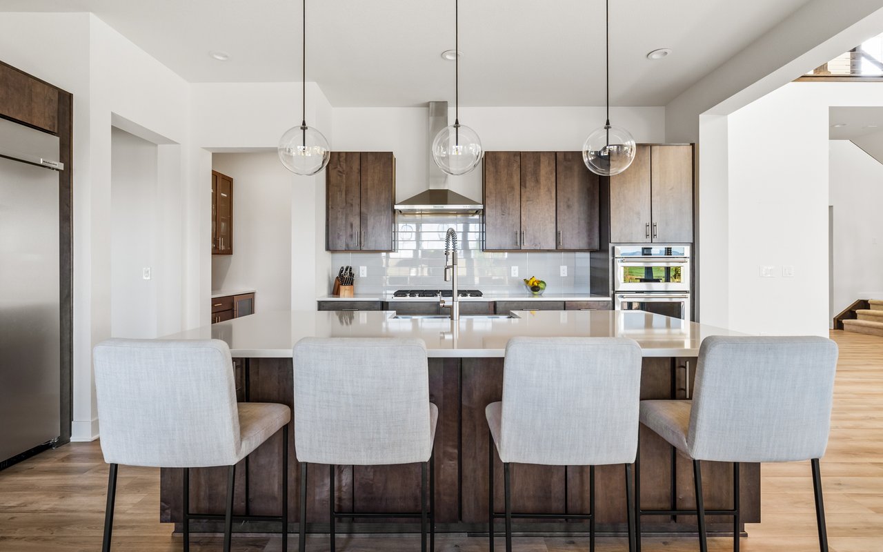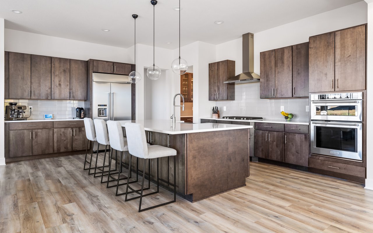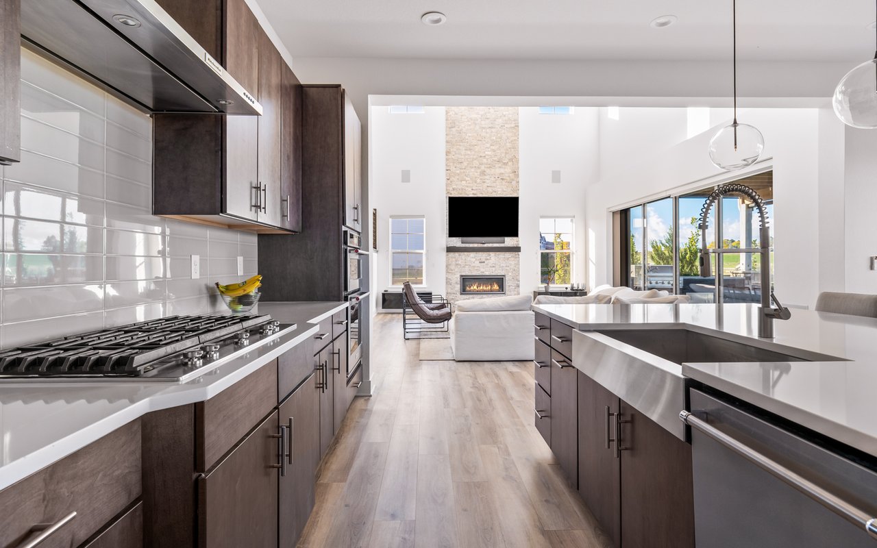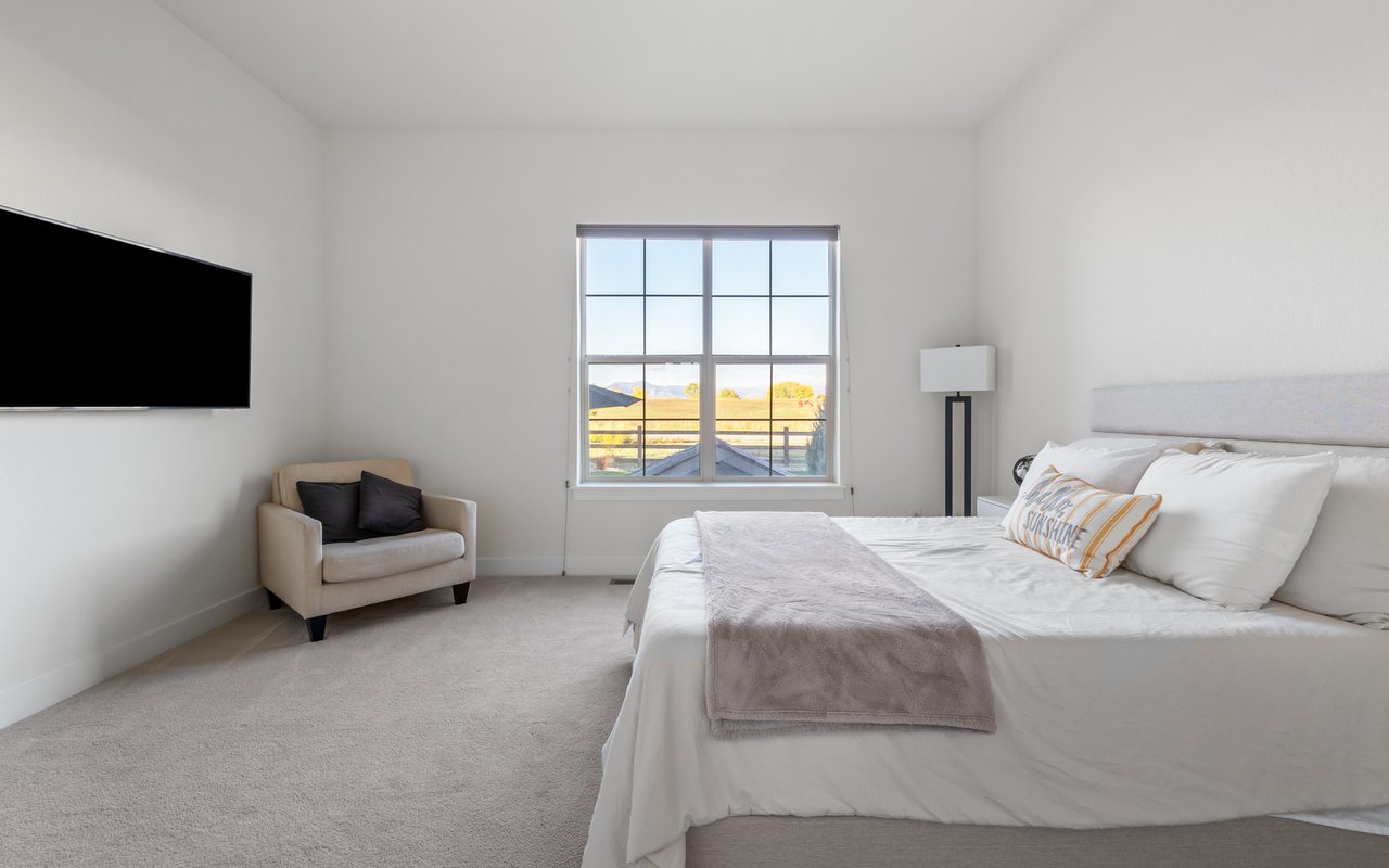 Turnkey luxury living awaits in this sun-drenched, newer-construction Erie 4-bedroom, 3.5-bath featuring expansive, upgraded interiors and poolside outdoor space. Inside this 3,954SF home, soaring ceilings and oversized windows create a bright and airy ambiance, while crisp white walls, wide-plank flooring and a soaring staircase bordered by metal-and-wire handrails underscore the contemporary aesthetic. The double-height living room features a gas fireplace, floating built-ins and double exposures. Chefs will love the gourmet open kitchen's top-of-the-line KitchenAid appliance suite, custom cabinetry, breakfast nook, and island dining counter, topped by Restoration Hardware pendants. A walk-in pantry adds storage, while a butler's pantry with a wine refrigerator leads to the formal dining room. Off the kitchen, a secondary suite is perfect for guests. A home office, powder room and mudroom complete the well-planned main level. From the living room, oversized sliders tempt you outdoors. Enjoy barbecues on the covered patio flanked by a summer kitchen, or warm yourself near the built-in gas fire pit. Ahead, the heated saltwater pool is surrounded by a sun deck, manicured landscaping and unimpeded mountain views. Head to the upper level to discover a large family room with views over the living room. The stunning primary suite boasts a king-size bedroom, private deck, two extra-large custom closets and an en suite spa bathroom. Two spacious secondary bedrooms share a Jack-and-Jill bathroom, while a large utility room with a GE washer-dryer makes laundry day a breeze. A 2,070SF unfinished lower level provides room to grow, and an oversized four-car garage adds plenty of off-street parking. Located in Flatiron Meadows, a peaceful enclave featuring foothills views, walking/biking paths, parks and easy access to Erie and Louisville amenities and BVSD schools, including nearby Meadowlark School. Discover serene country living just 20 minutes from Boulder and 40 minutes from Denver.